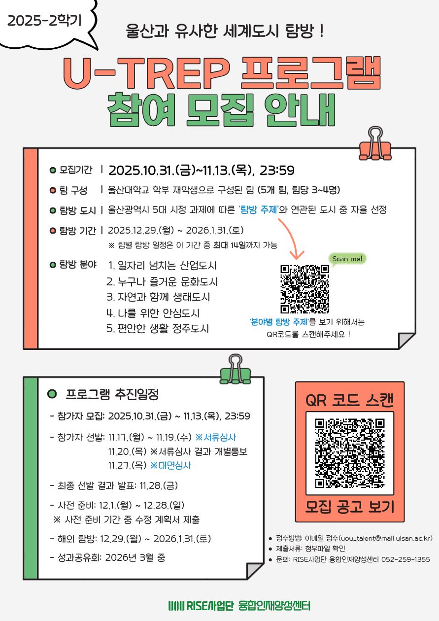 2025학년도 2학기 U-TREP 해외 도시 탐방 프로그램 안내 |